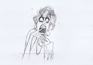 He produced a ton of these sheets searching for the most inventive poses, expressions and acting patterns. Even if the scene is only 16 frames long, like the one shown here, Milt tried several variations on the main idea of Medusa freaking out at the sight of two mice.